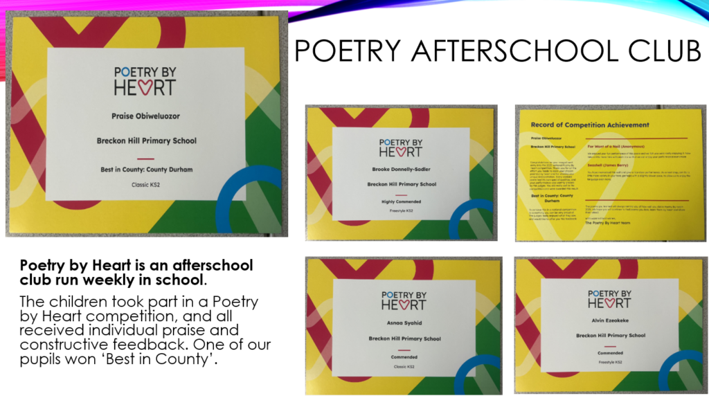 Y4 Child: “Poetry club is great because I like learning new words. It is different to school work because I am in a new group so I made new friends.”